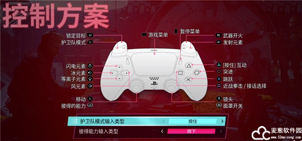 6、这里是手柄的操作方式,大家可以首先熟悉一下,然后设置护卫队模式输入类型。