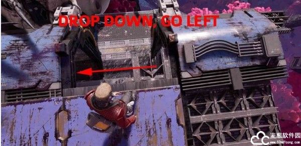 走了3分钟左右,我们会从铁滑坡滑到下面。火箭会说那一定是死胡同,向右转,跳到下面的平台,然后向右转。