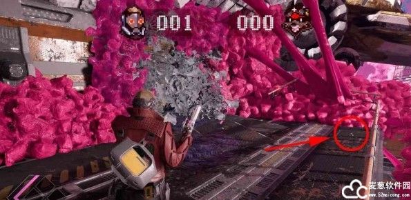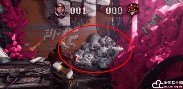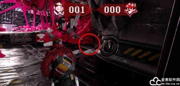进入一个空旷的区域,有很多寄生虫巢穴,可以在这里快速清理巢穴,赢得与火箭的赌注。进入中央的笼子,文件在地上。