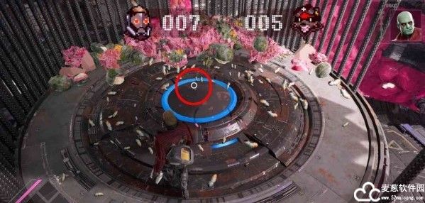 找到第一个工作台后,进入下一个区域,这里会出现新类型的敌人。打败他们后,往上走,清理掉角落里的灰色物质(面具视野中亮黄色),然后找到。