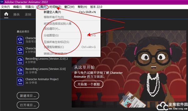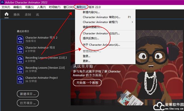 1、在麦葱站下载Character Animator 2022中文版压缩包并解压文件。