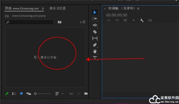 3、进入主界面后,找到左下角这个导入媒体以开始,双击这个区域。