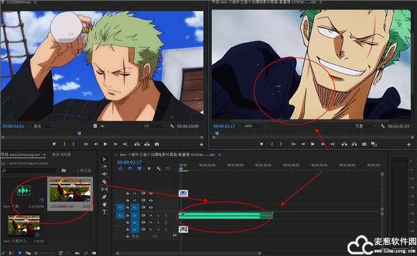 10、Shift+鼠标左键:选择两素材间的所有素材