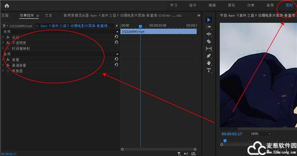 9、在图形模式中,可以设置视频的不透明度以及音频的音量等。