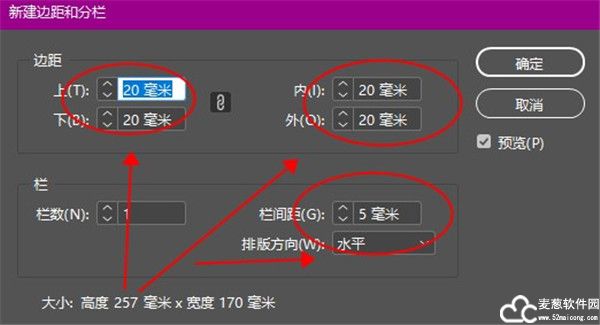 3、之后还需要设置边距和分栏项目,调整到合适的页面距即可,最后点击确定创建。