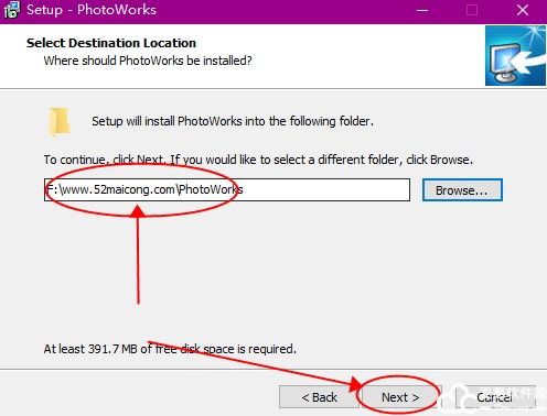 6、设置PhotoWorks 11破解版的安装路径,默认是系统盘,可以更改至其他磁盘中。