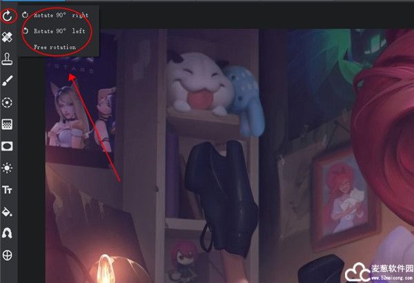 3、在左边的一列中,第一个是旋转图片的工具,并且还能够自己设置旋转的角度。