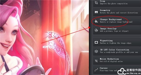 6、在右边还有抠图工具可以使用,点击Change Background选项。