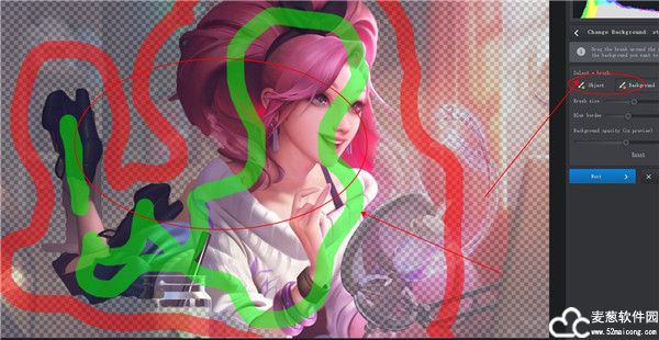7、绿色是抠图的对象,而红色则是抠图的范围。