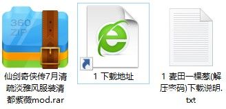1、在麦葱站下载仙剑奇侠传7月清疏淡雅风服装清都紫薇mod压缩包并解压文件。