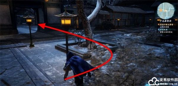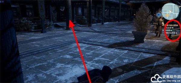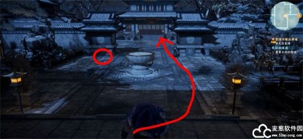 2、之后玩家需要控制角色来到这个地方,并且把隐蛊抛到守卫的旁边。