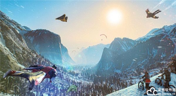 5、在职业模式或多人赛事中,摩托车、雪橇、滑雪板或滑翔衣穿越这个无缝开放的世界。