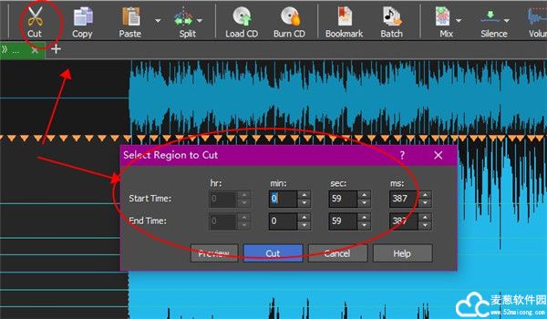 5、用户可以使用鼠标按住左键不放来选取一段需要编辑的音频。