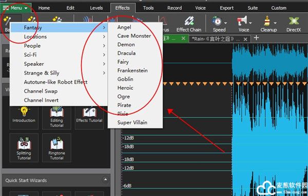 9、还能够给音频文件添加一些特效,用户根据自己喜欢的效果来设定。