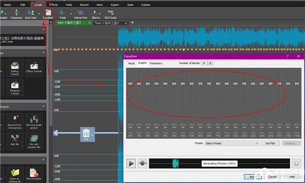 11、在Levels选项中,有着Equalizer可调节音频的参数。
