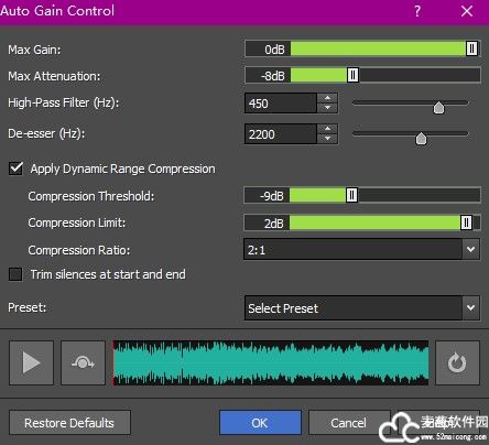 7、在下面还有预览的选项,用户可以点击播放或者是暂停,并且还能够设置波峰波谷。