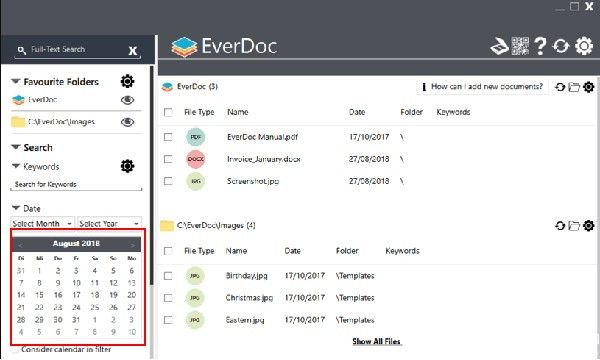 永远不要浏览大量灰尘的文件。在软件中,您可以根据日期、标题或分配的关键词清晰地排列文件。如果不够,可以随时在存档中使用全文搜索。