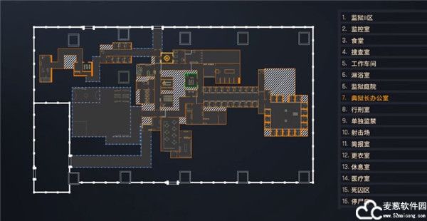 3、打开地图可以查看整座监狱而定布局,并且还有各种区域的分类。