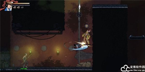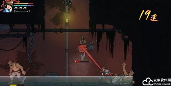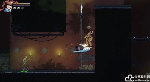 2、英雄凭借二尺短刀和武术腰带,以高超的武术对抗强权恶霸。游戏者可操纵廖添丁使用多段连击,并可通过击败敌人获得对方的武器,从而打出多种不同的组合功夫。