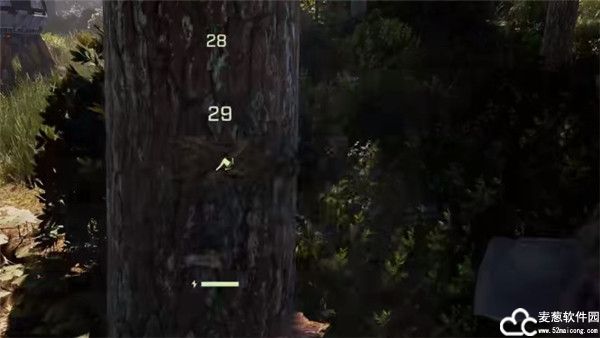 7、还可以用斧头采集木材,并且树木会被直接砍断,再收集。
