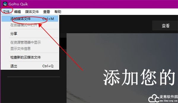 1、打开刚刚安装完成的软件,再最上面一栏中点击文件选项,下拉找到添加媒体文件。