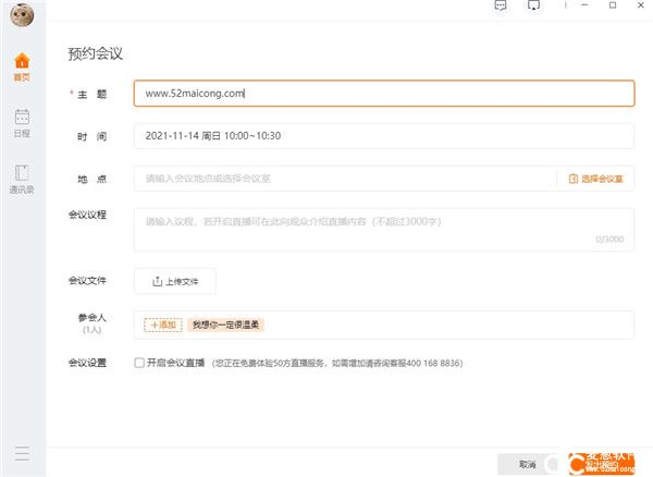 4、会议快速预约:MindLinker电脑版有着一站式会议预约,邀请与会者,预订会议室,提前共享议程和文件;