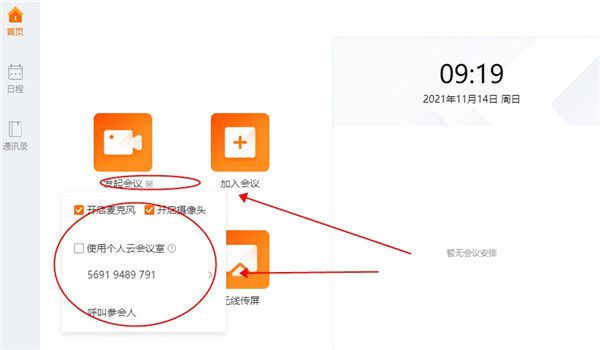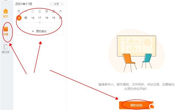 11、在日程中,可以查看或者是创建一个新的会议,也支持预约会议。