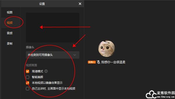 5、在视频设置中,是可以开启高清模式、智能美颜以及以镜像效果显示。