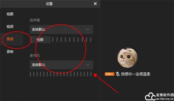 6、然后就是调整音频设置,扬声器以及麦克风都可以选择相对应的设备。