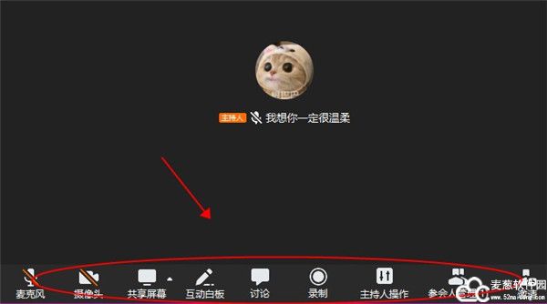 8、在最下面一排中空余设置视频的基本参数,就比如共享屏幕、互动白板以及讨论等。
