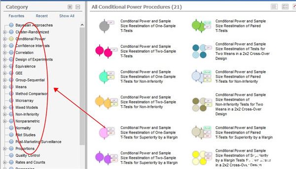 使用下拉菜单。程序搜索或类别树可以轻松找到样本量程序。看短片,知道如何选择软件中需要的程序。