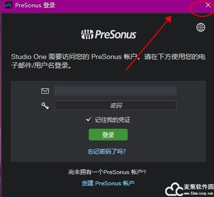 11、然后就是出现登录界面,点击右上角的关闭按钮。