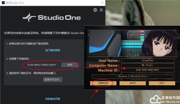 13、把里面的激活码复制粘贴到更改打开的注册机内,再点击Generate。