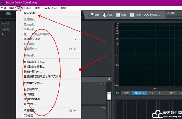 5、项目选项中可以导入文件,并且还能够创建交叉淡化以及项目的设置。
