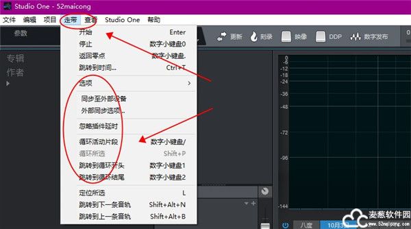 6、走带选项可以对音频进行开始以及停止等操控,并且还能够同步到外部设备。
