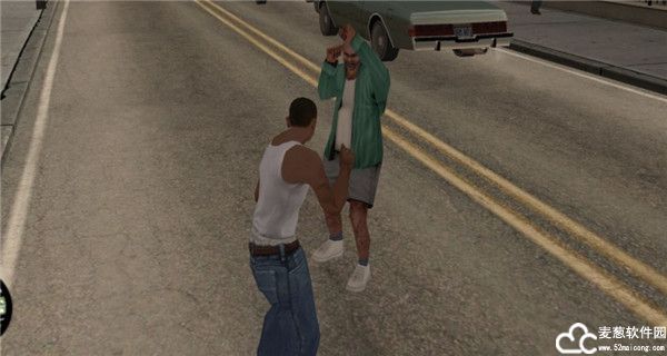 到达目的地后,叫了一份外卖,突然碰上了对头,于是开始了。先用车撞,直到对方车爆炸,里面的敌人出来解决(我已经从行人那里拿到了手枪,很容易通过)。最后,两个朋友分别。