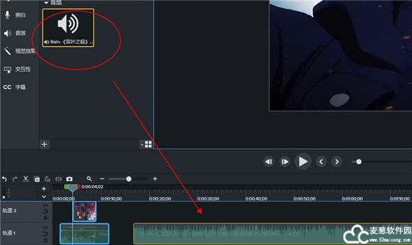 9、当然也是把音频文件导入到软件内,再按照上述的方法拖动到轨道内,并进行剪辑。