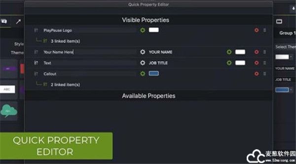 将标注,文本和其他元素组合在一起时,会自动创建一个快速属性资产。轻松调整同一组包含的多种效果或资产属性。
