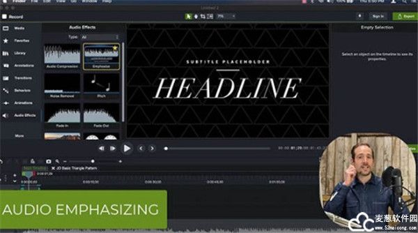 Camtasia Studio 2021免费版,新的Emphasize音频效果让你很容易在视频中的所有声音之间建立平衡。