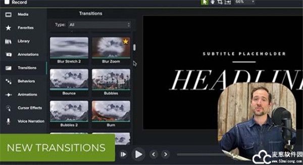 Camtasia Studio 2021免费版在2021年的有着75种以上可供选择!