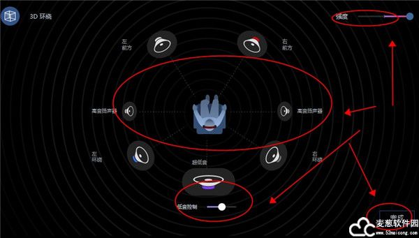 2、点击后就会进入另外一个界面,可以调整各个方位的音质。