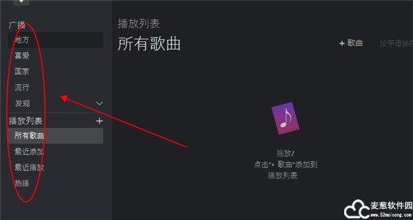 7、在左边有着广播和播放列表可以查看,并且话能够预览热播的音乐。