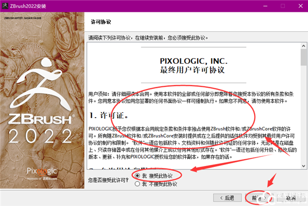 5、用户需要阅读软件的按照许可协议,之后再勾选我接受。