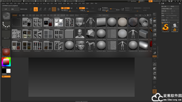 zbrush2022,是该系列中的最新版本,相较于之前的老版本有了非常大的进步,在功能和操作上都变得更加的丰富和简单了,并且还在不断地升级和优化之中,积极汲取用户的意见和建议,以致于把最好地一面展示给广大用户全体,更好的服务于各位设计师们。毕竟是最新的版本,所以也有很多的新功能加入进来,就比如浅浮雕,能够将三维图像显示出没有低切的低浮雕雕塑,适用于硬币以及家具上,之后还有斜面功能,能够帮助用户单独创建几个几何部位,是可以和Live Boolean共用的,除此之外还有画笔噪声添加功能,能够将用户的图像、噪声以及噪声的预设全部都应用于画笔之中,可以帮助用户在应用皮肤时有着更加的细节的突出。还有很多的新功能小编就不一一介绍了,用户可以亲自来到软件内体验一番,大家只需要在我们麦葱站下载即可,非常的方便,操作也是极其的简便,不需要很多的复杂步骤即可轻轻松松驾驭。