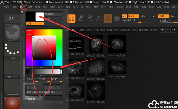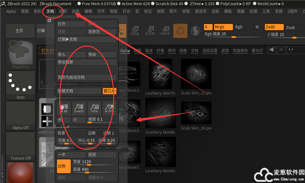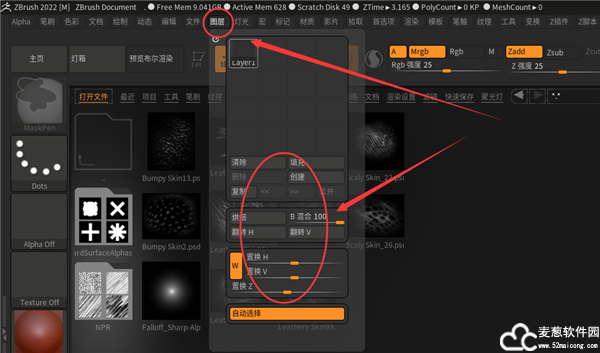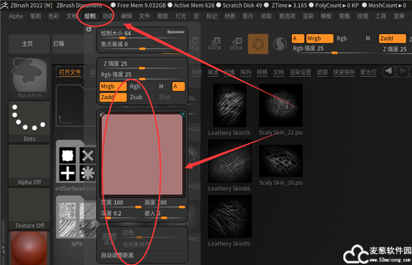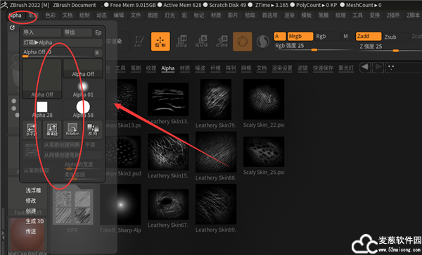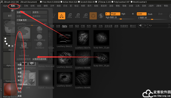 笔刷还可以从纹理的选定区域获取RGB将信息转换为可用的雕刻细节Alpha。