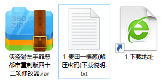 1、在麦葱站下载侠盗猎车手罪恶都市重制版四十二项修改器压缩包并解压文件。
