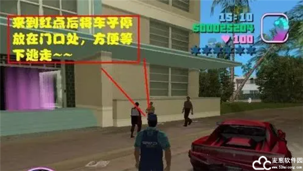 6、紧接着把车放在这个建筑的大门出,方便等下逃跑。