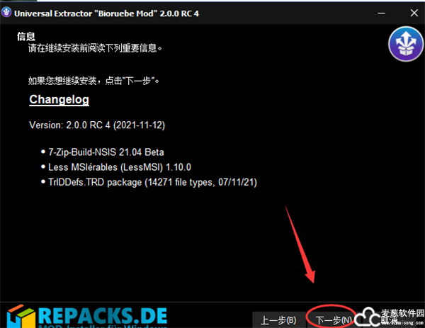 1、在麦葱站下载universal extractor最新版本压缩包并解压文件。