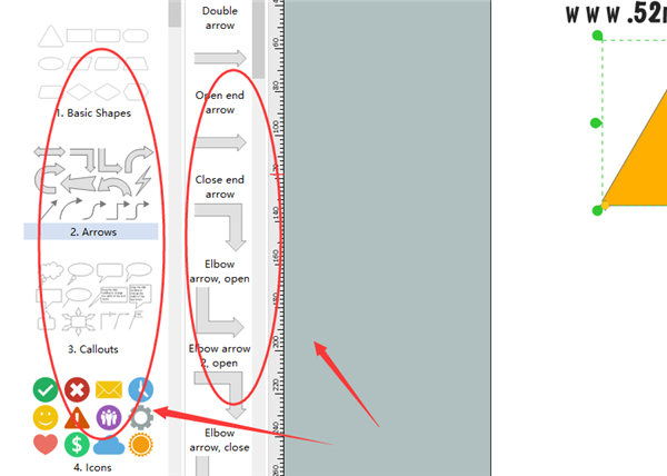 4、然后用户就可以点击旁边的多边形图案,拖到空白的区域。