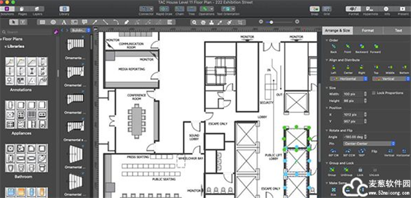 作为一个建筑计划软件,有很多外部程序解决方案,包括向量模板和模板,帮助任何项目都是一个专业的工具,可以想象你的蓝图、建筑和平面图;适用于家庭、商务中心、餐厅、商店或办公布局。建筑计划解决方案系列包括数百个符合行业标准的模板库解决方案,可用于:办公布局;管道和仪表图(PID);供暖、通风和空调(HVAC);以及紧急出口计划。
